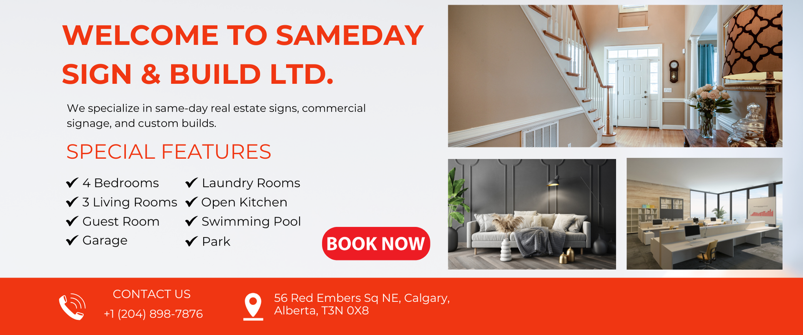 At SAMEDAY SIGN & BUILD LTD., we combine creativity, craftsmanship, and speed. Based out of Calgary, we offer same-day service on many orders and are known for our commitment to customer satisfaction and attention to detail.